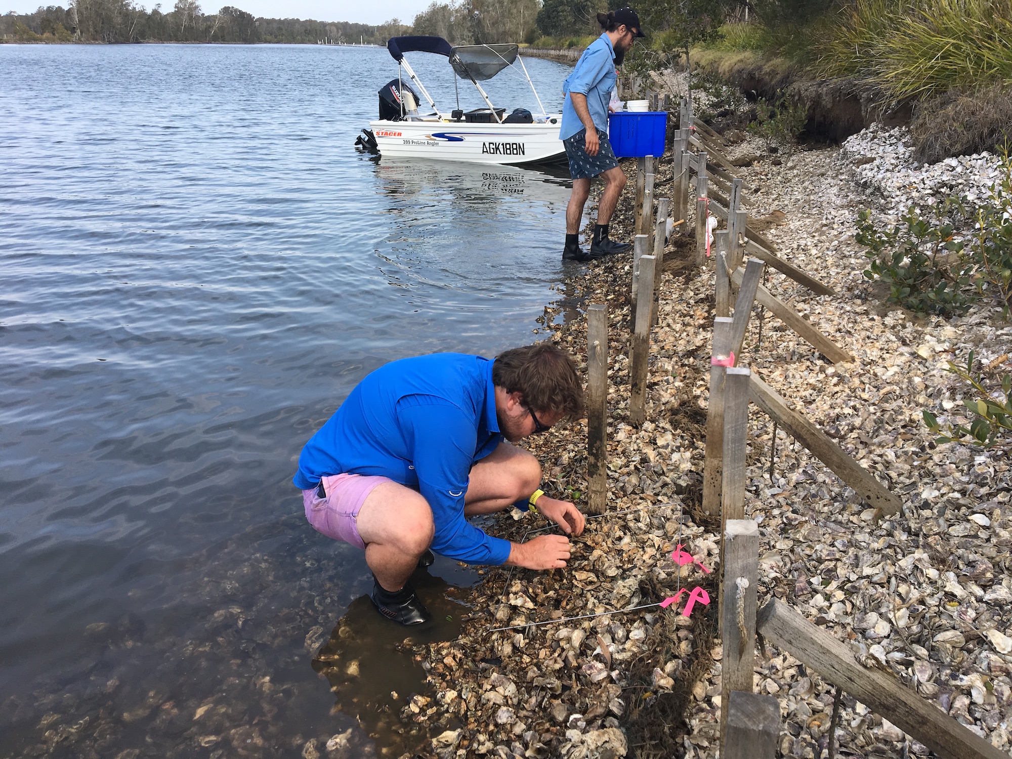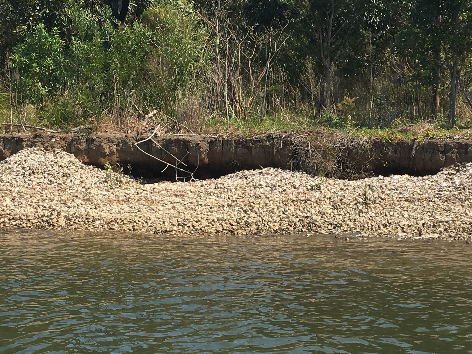 Initial bank protection work at Gereeba Island using coir logs and mangrove planting was only partially successful with most mangroves surviving but the coir logs disintegrating or being washed away. To ensure the young mangroves weren’t washed away the project trialled new ways of placing waste shell from oyster production along the bank to provide wave protection. Live oysters harvested from oyster leases were also added to encourage and possibly accelerate the creation of a living structure. Site monitoring is being done by Hunter LLS, TIDE and the University of Newcastle and results are promising with live oysters surviving and growing and the structure continuing to protect the young mangroves and the riverbank.
